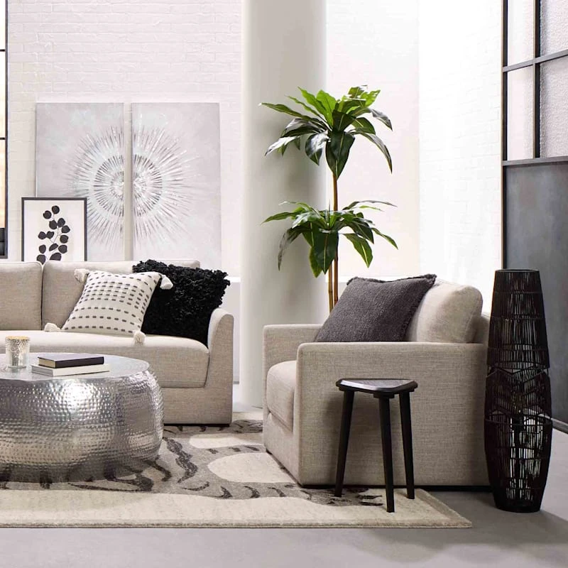 Found & Fable is a new collection that lets you explore what’s right around the corner. Choose your own adventure every day. Savor it all and say yes to what comes next�exclusively At Home. Create a cozy seating area in your living room, bedroom or wherever you choose with the beautiful addition of our Fallon linen sofa. It�s relaxed yet refined, and you�ll love the neutral linen upholstery. Simple, modern lines add to the overall personality of this striking couch. Dark espresso block legs are a juxtaposition to the light and airy upholstery. Create a beach or nautical vibe, or wherever your heart takes you.