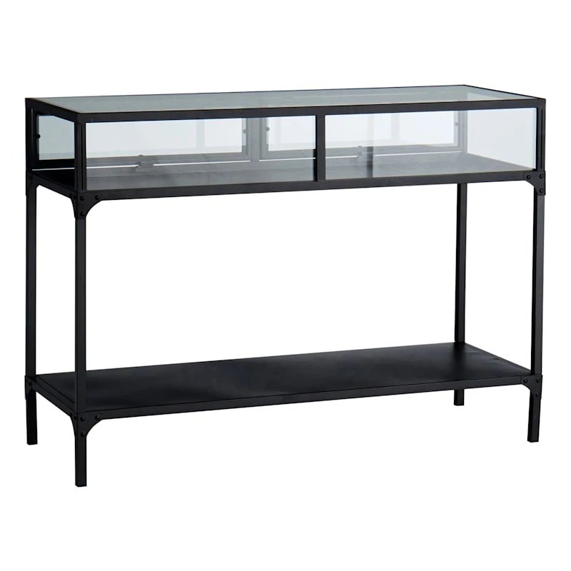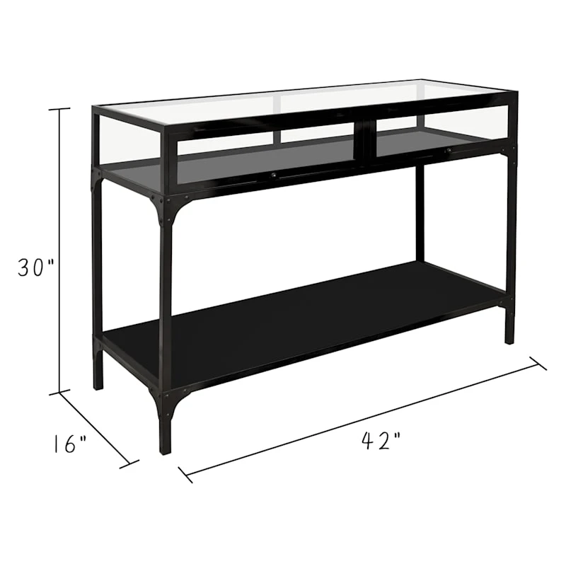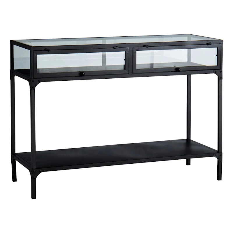 Modern farmhouse meets At Home prices in Honeybloom, our exclusive new brand that celebrates life lived together. Our all metal Sage Frost console table features two drawers and one shelf that provides large storage. The dramatic black finish matches all sorts of furniture styles.
