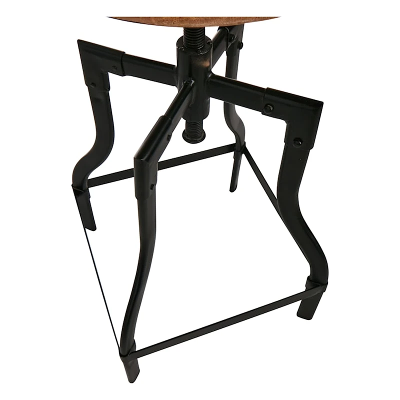 Modern farmhouse meets At Home prices in Honeybloom, our exclusive new brand that celebrates life lived together. Perfect pulled up to a modern rustic home bar or eclectic kitchen island, our Waco adjustable barstool gives your visitors a seat and your dining and kitchen space a charming dose of style. Crafted with a modern industrial flair, it stands atop a black metal frame and legs accented by an all-around square footrest, while the wood seat that spins up or down completes the look.
